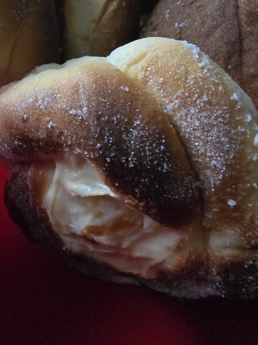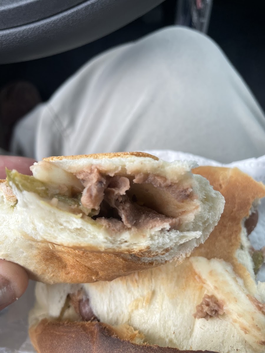 First trying these torta de frijol. Pretty good. Nice and warm. It has cheese and jalapeños.